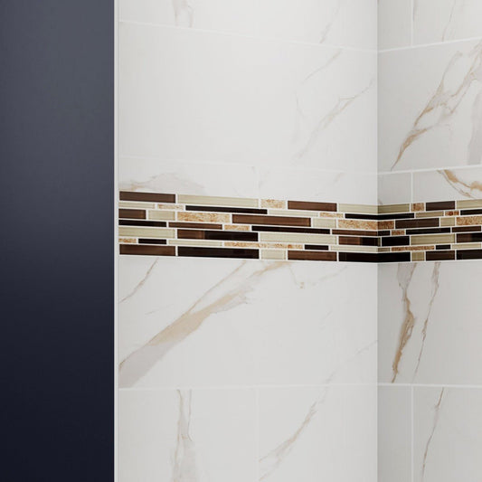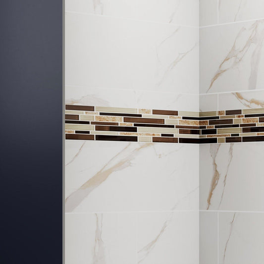 Verona Bathroom Tiles 34"x60"x96"Alcove Stone Shower Wall Kit for Bathroom Remodel,Height adjustable,Fast Installation,Waterproof,Champagne Gold