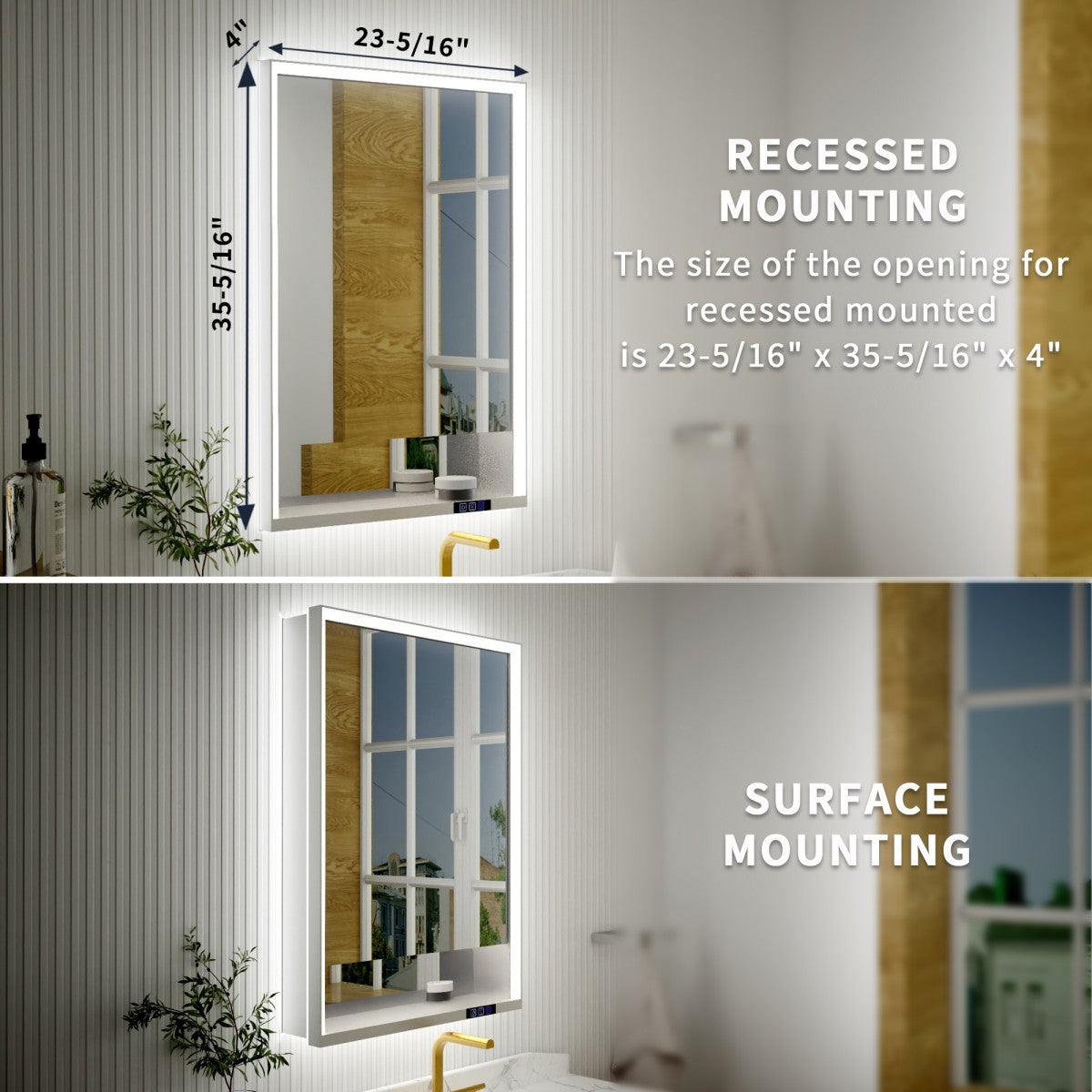 Supports both surface mounting (via a full-length Z-bar) and recessed installation. Inside, adjustable tempered-glass shelves allow you to customize storage to suit your personal needs, from skincare to daily essentials. -