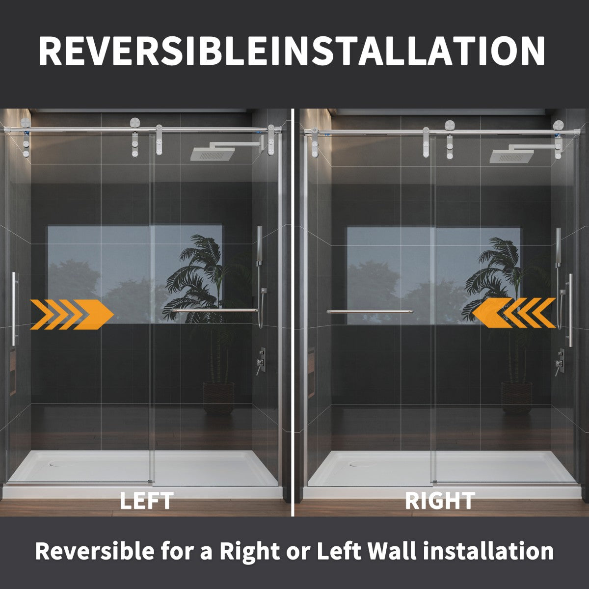 Anchor-B Allsumhome 56"-60"W x 76"H Frameless Sliding Shower Door,8mm Tempered Glass Shower Enclosure,Double Easy Clean Coat,Brushed Nickel,Buffer