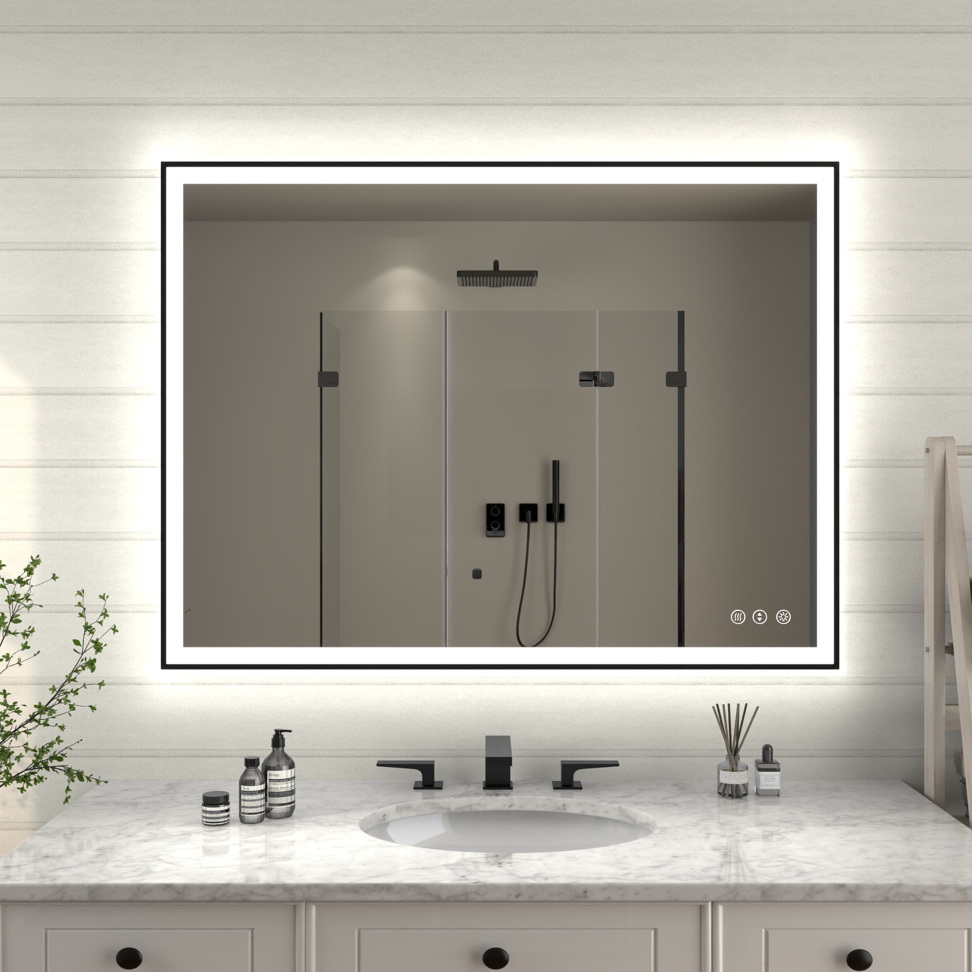Apex-Noir 48"x36" Framed LED Lighted Bathroom Mirror
