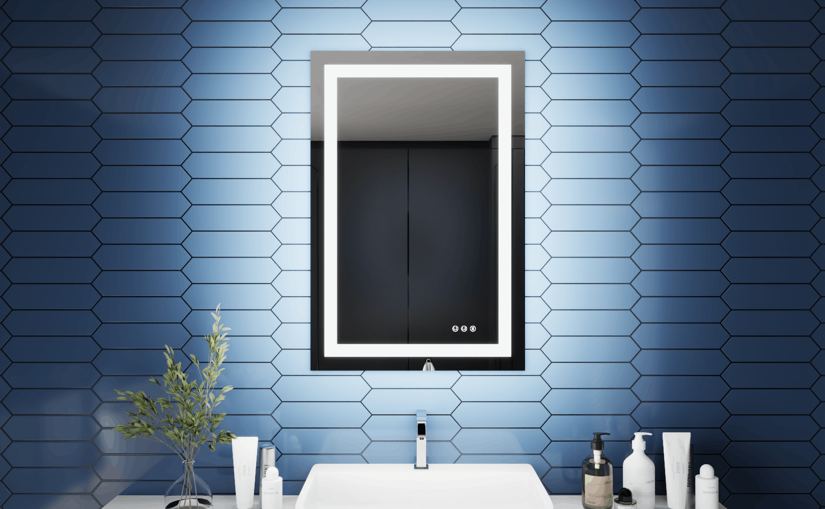 Equipped with two LED strip lights, the lighted bathroom mirror provides double the illumination from both the front and back.