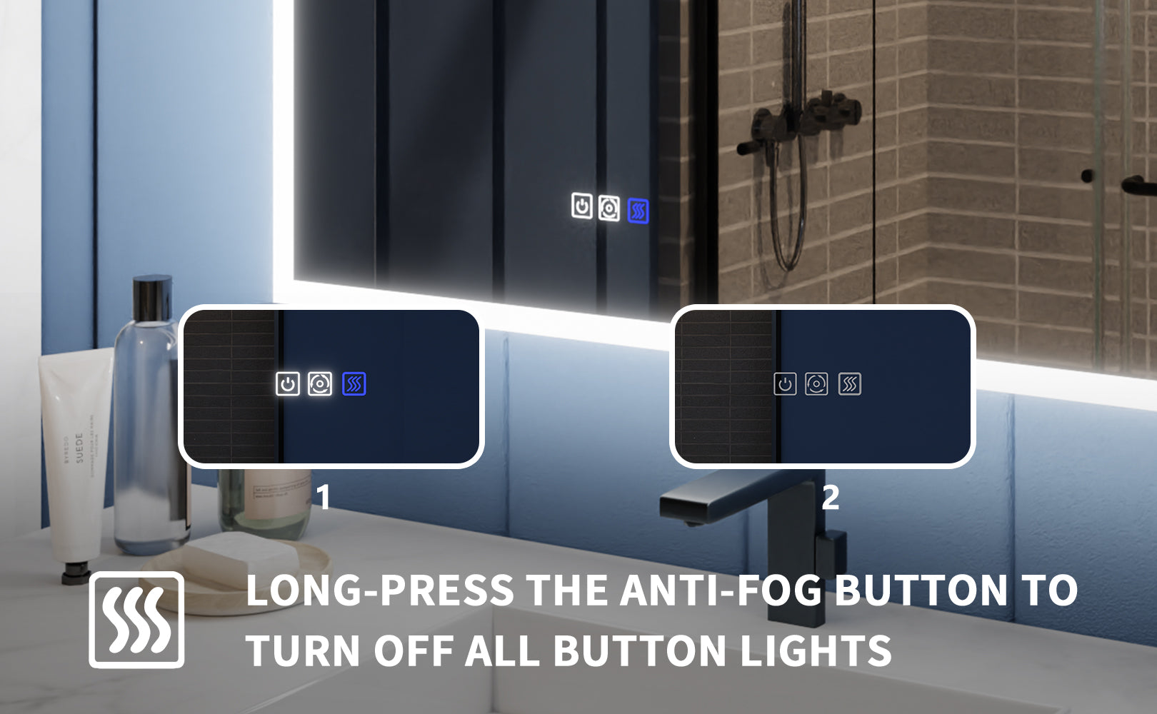 1. Long-press the anti-fog button to turn off all button lights, eliminating harsh lighting that might disturb your sleep.