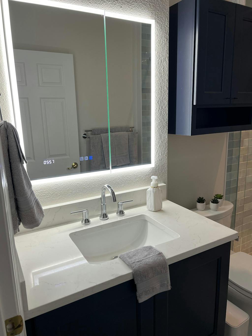 By sharing your vanity size and lighting setup, we can help you determine the ideal medicine cabinet layout for your bathroom.