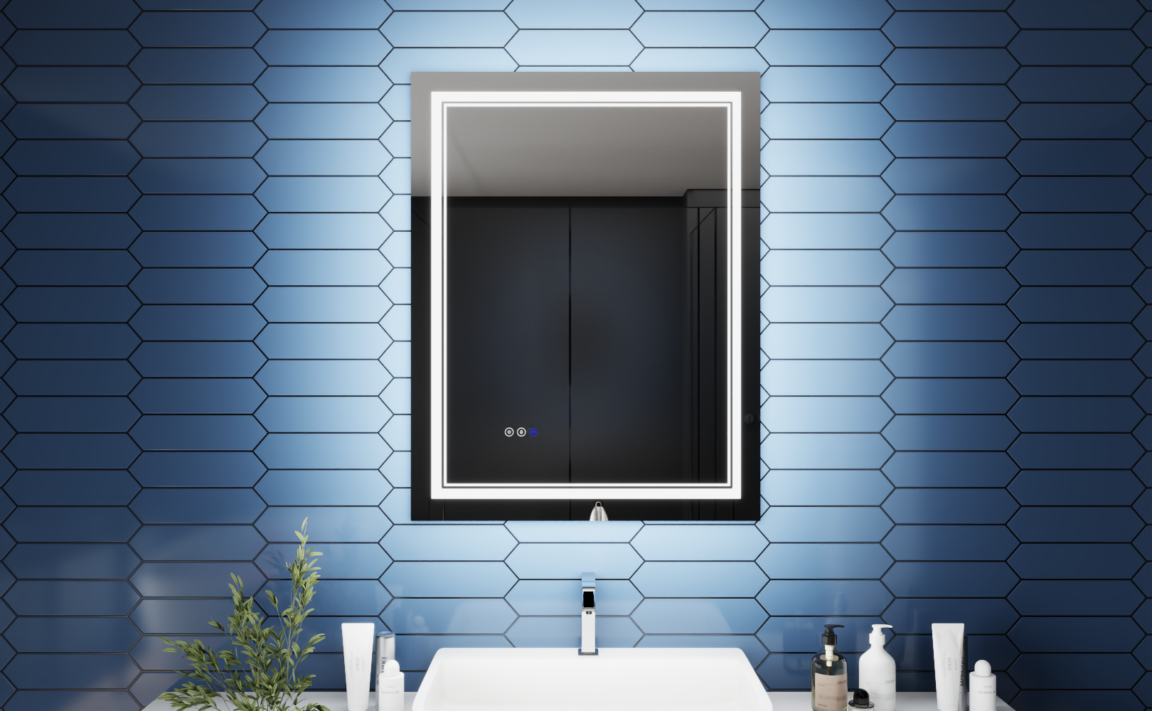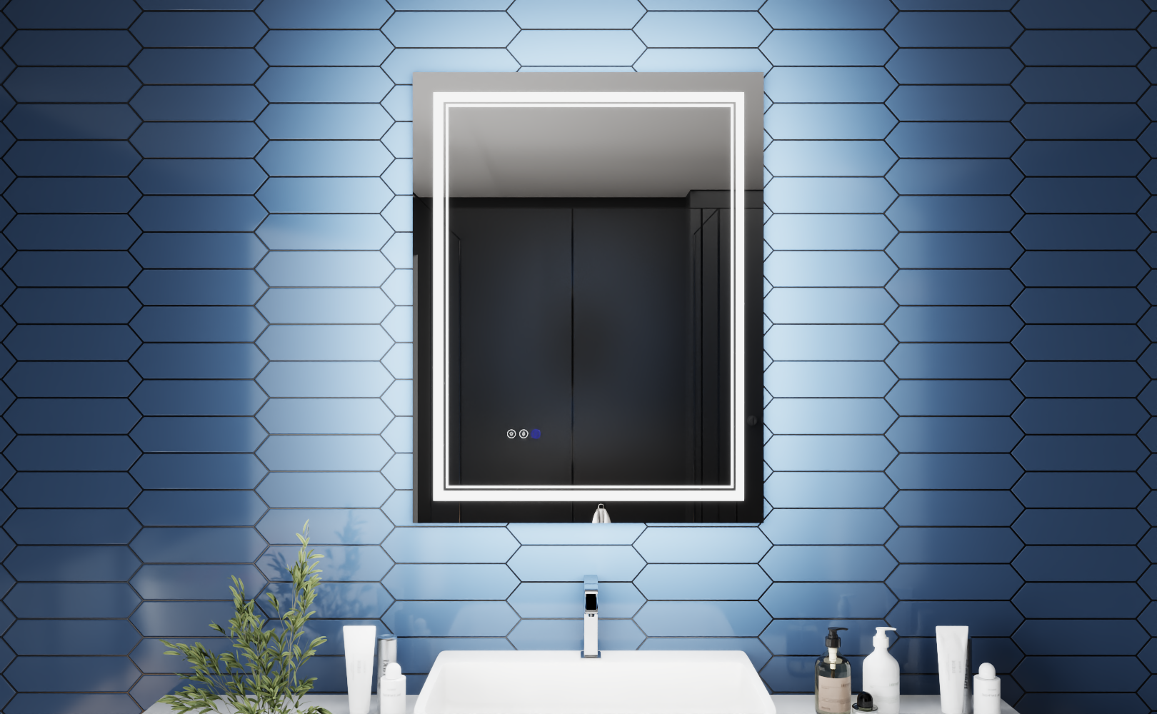 Upgrade your bathroom with the Linea Series LED Bathroom Mirror, featuring both front and backlit LED lights for a balanced, ambient glow. The touch button allows you to easily turn the lights on or off, and when the lights are off, the button light can be completely turned off as well. Perfect for bright, energizing mornings or relaxing evenings, this mirror combines sleek design with practical functionality.