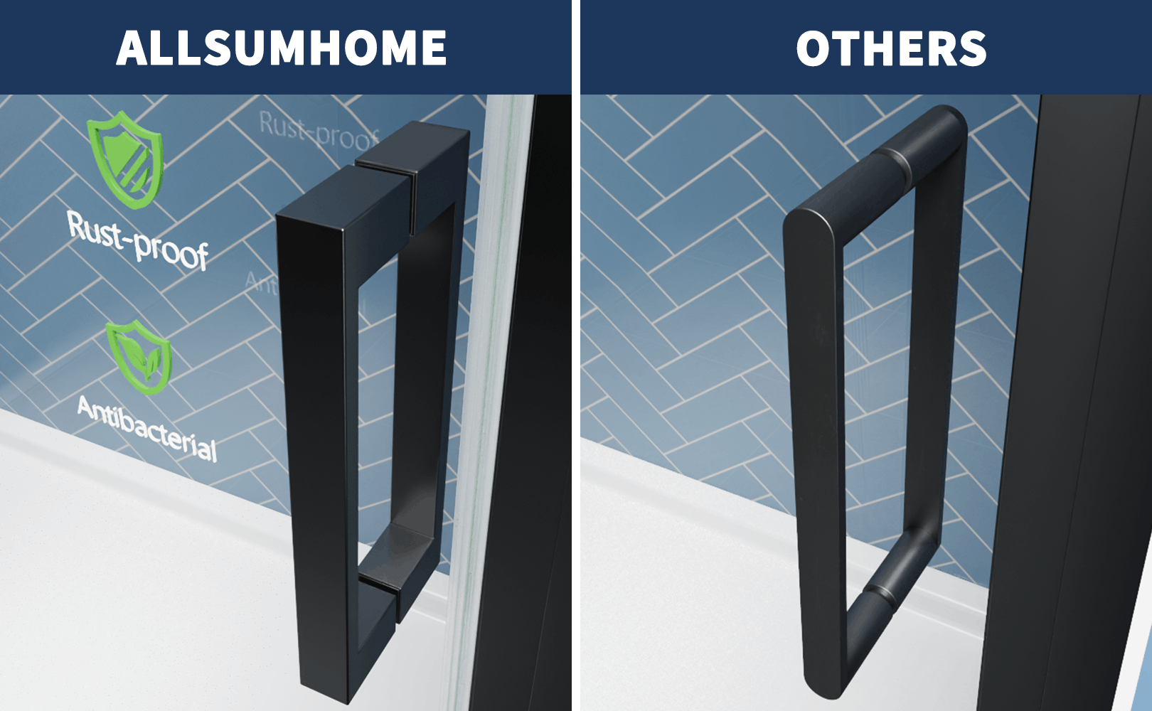 Our handles are made from 304 stainless steel, ensuring rust and corrosion resistance. They maintain a polished finish even in wet environments. - Antibacterial & Hygienic
