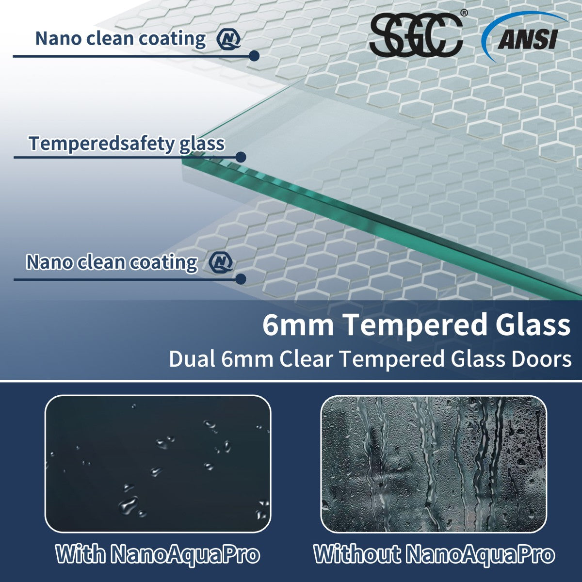 - Shower doors are SGCC and ANSI certified.