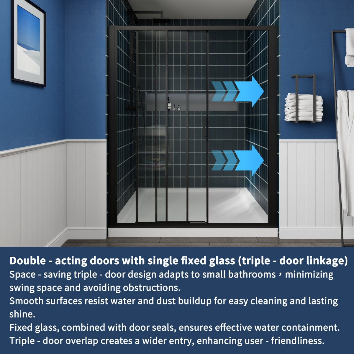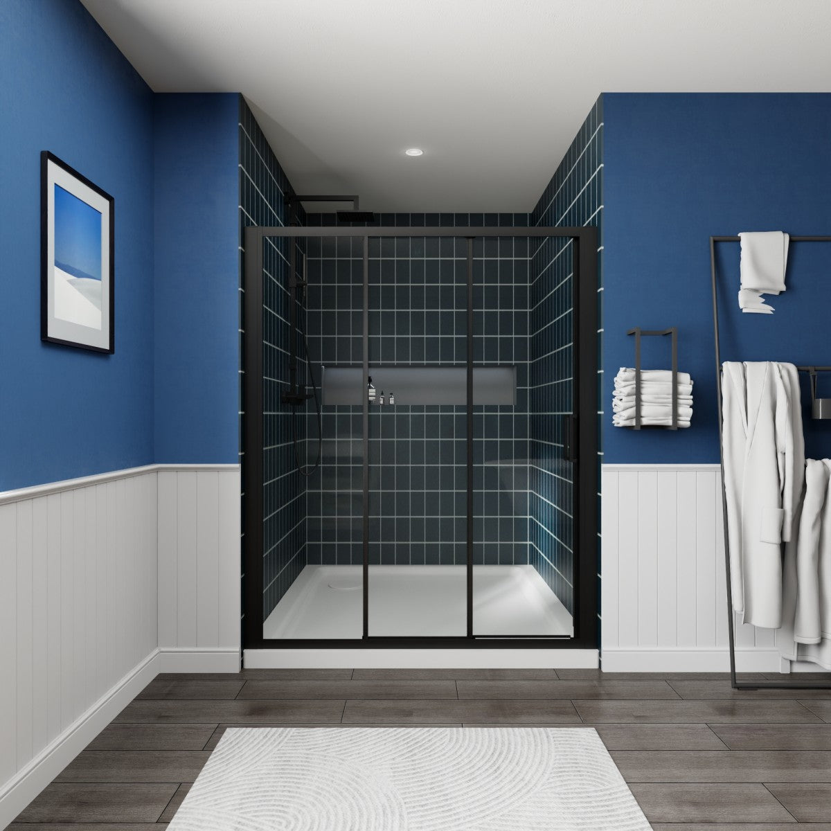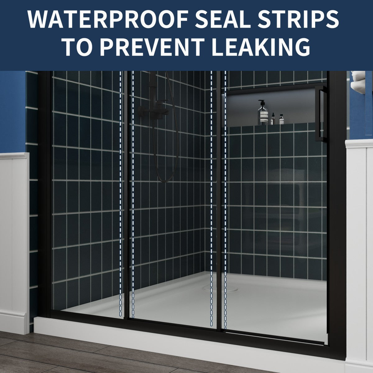 Nexus 44-48W x 70.H Easy Clean Framed Tri-Fold Sliding Shower Door with 1/4" (6mm) Clear SGCC Tempered Glass,Matte Black Finish