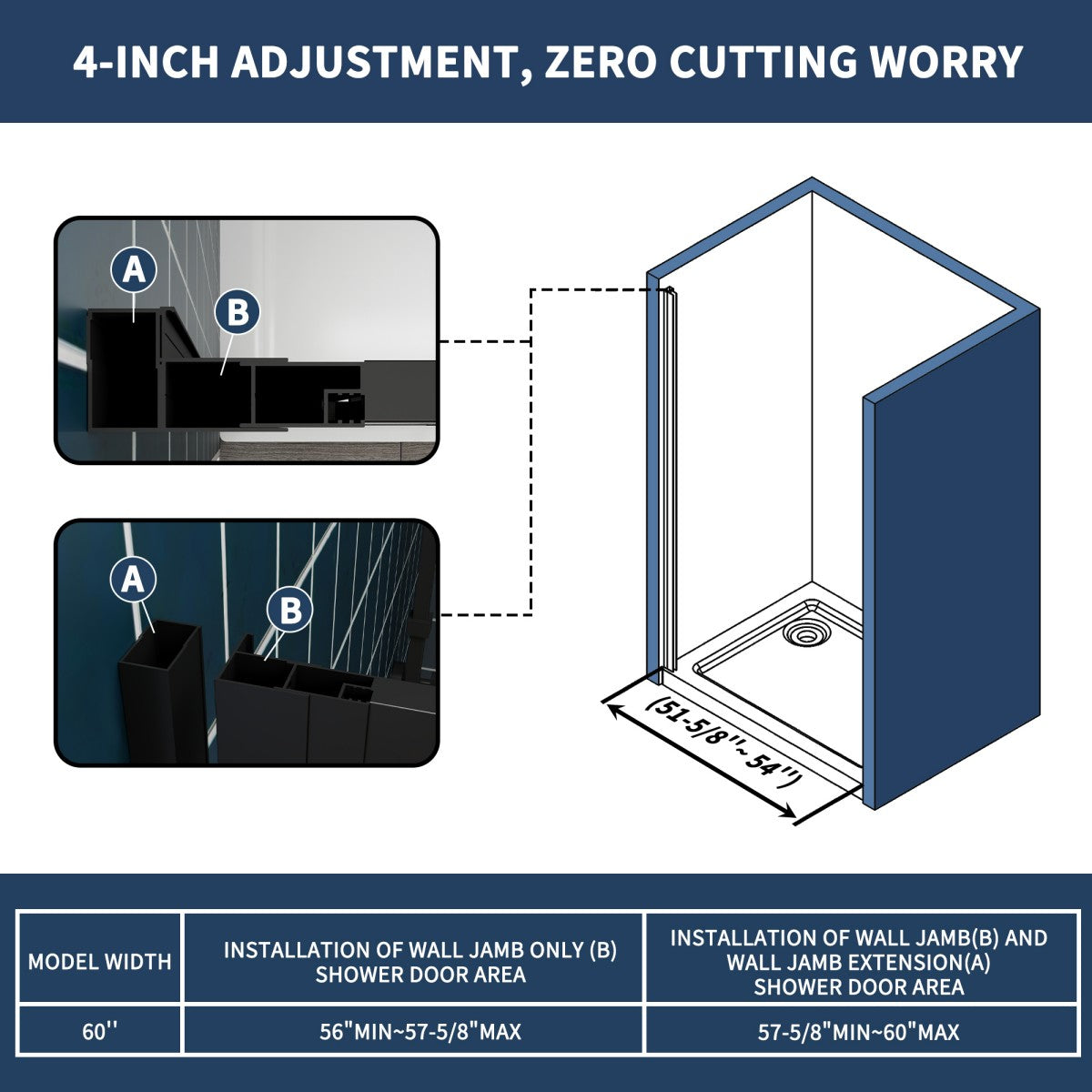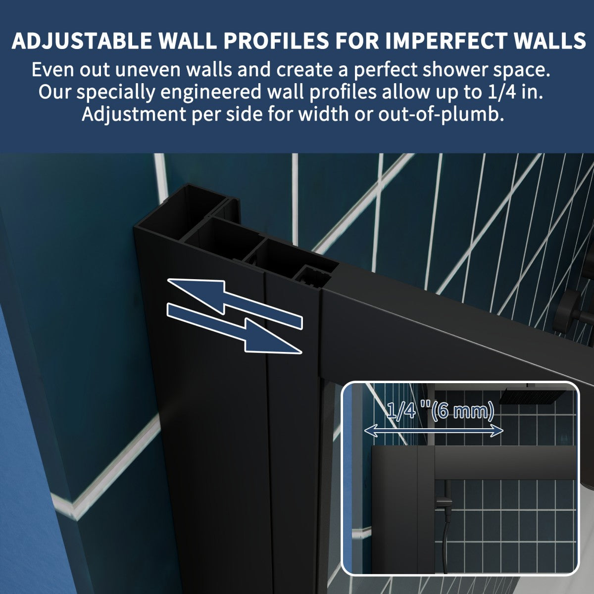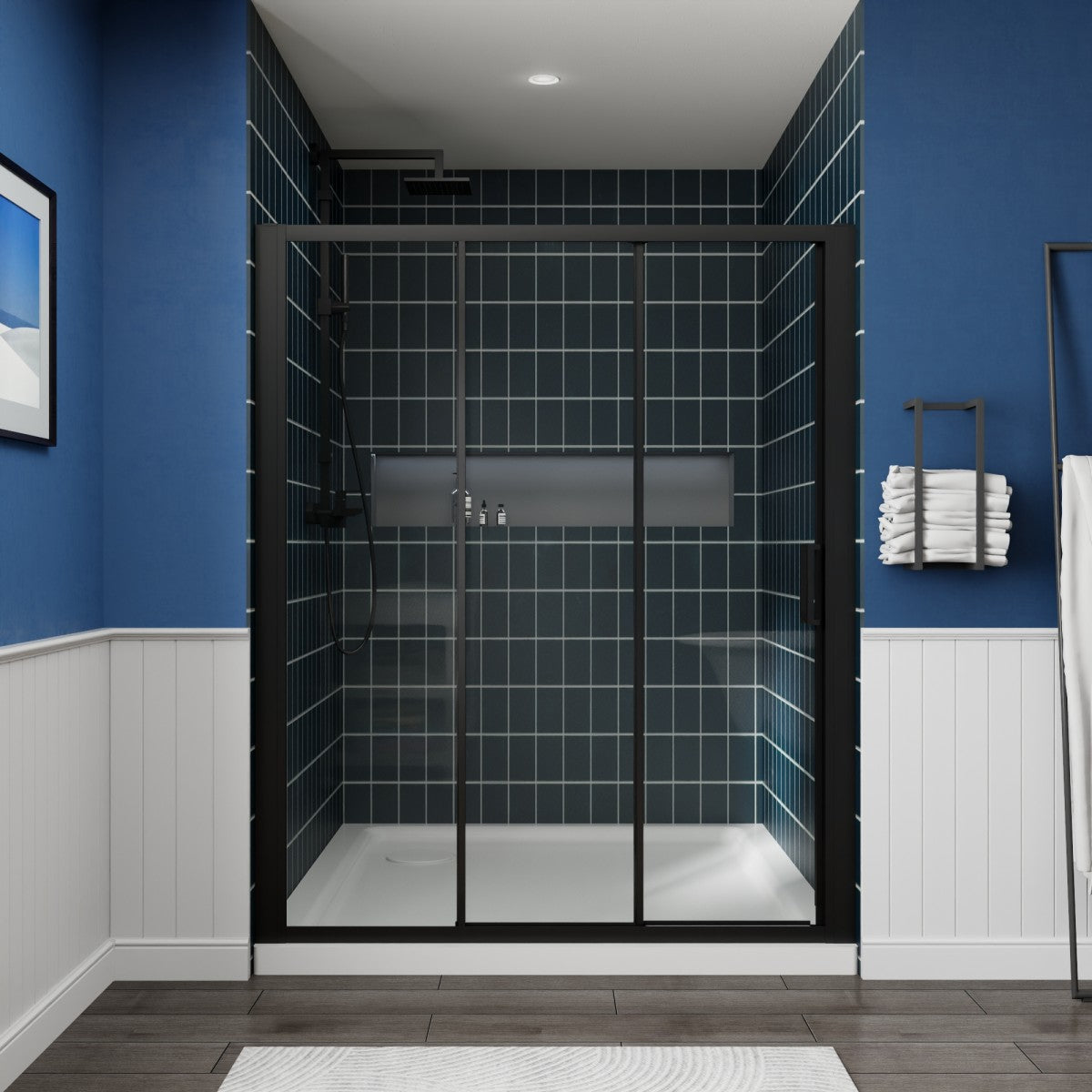 Nexus 44-48W x 70.H Easy Clean Framed Tri-Fold Sliding Shower Door with 1/4" (6mm) Clear SGCC Tempered Glass,Matte Black Finish