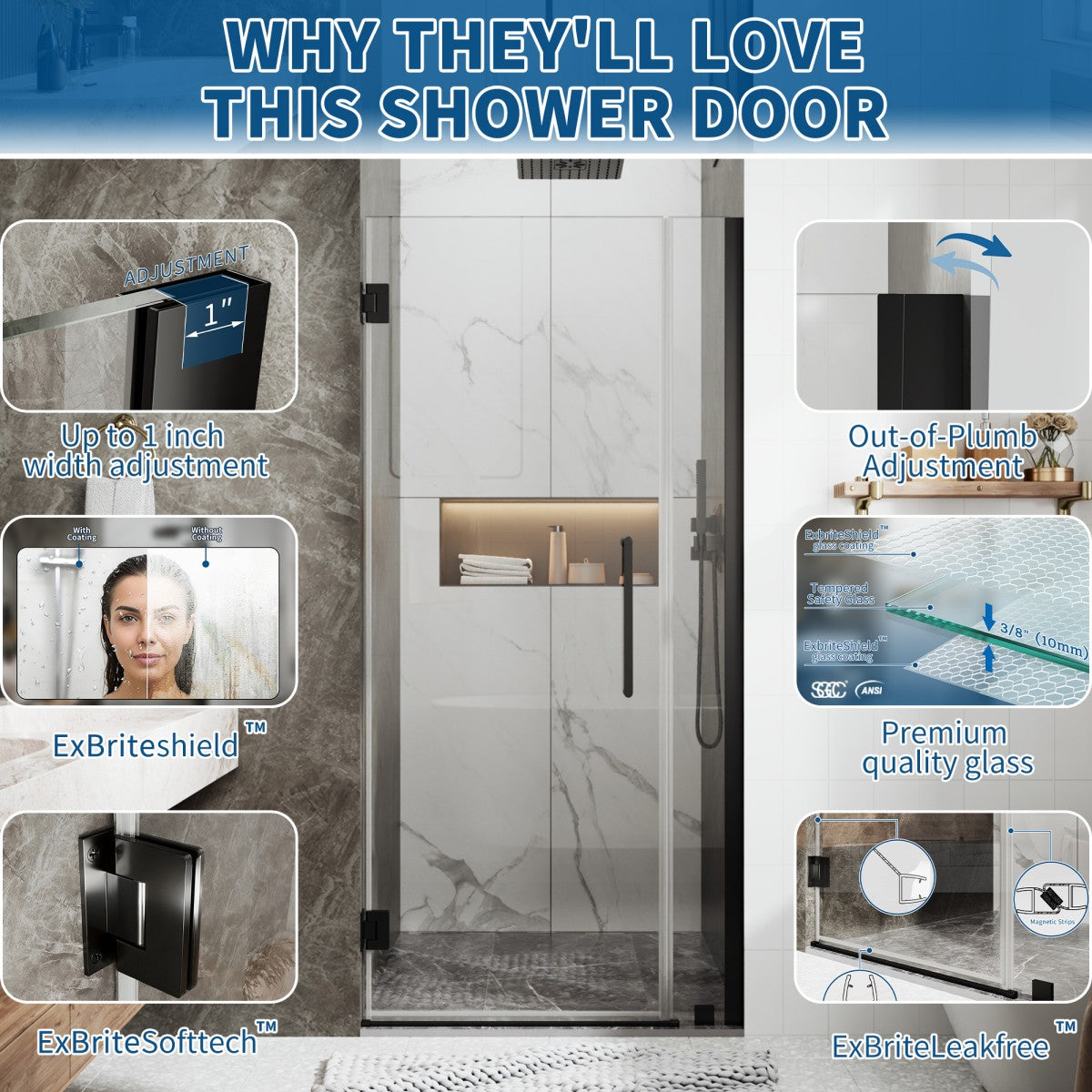 35-36" x 74" Pivot Frameless Shower Door,Matte Black,Easy clean|ExBrite Valor Series