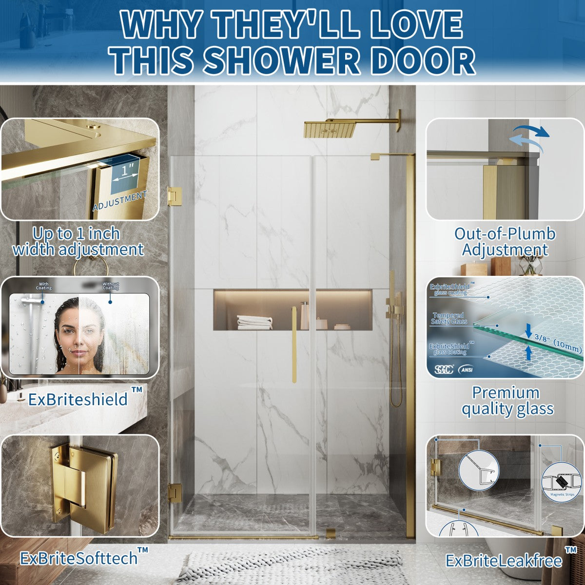 41-42" x 74" Pivot Frameless Shower Door,Brushed Gold,Easy clean|ExBrite Valor Series