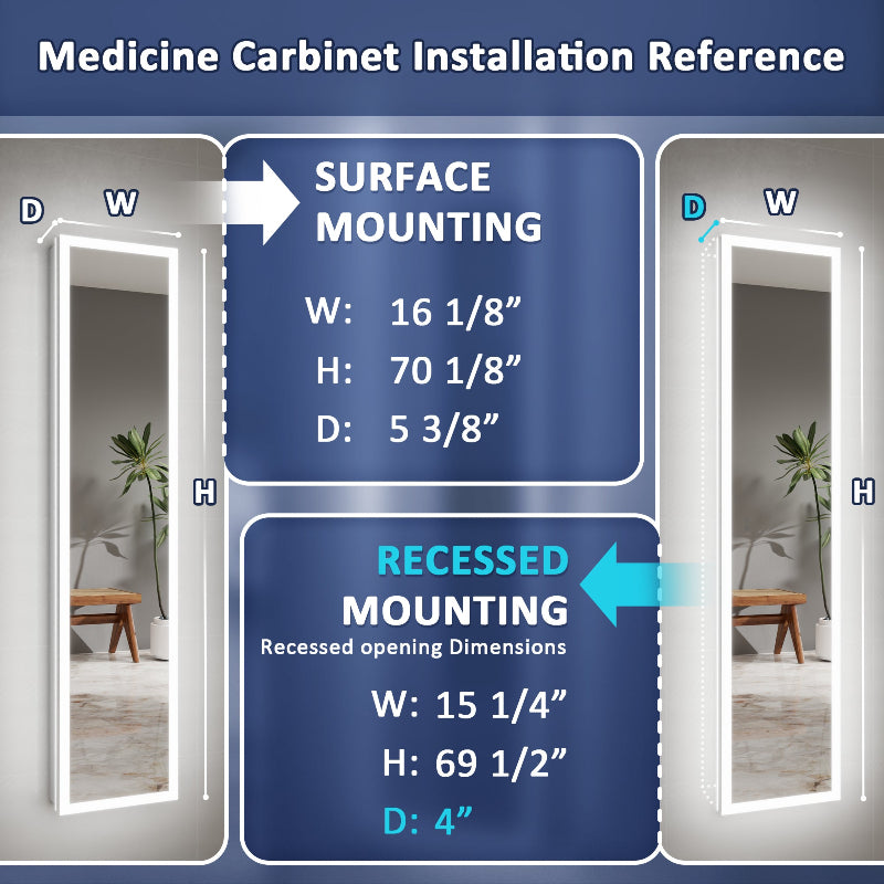 - Flexible Installation & Premium Build: Choose your look with easy surface or recessed mounting options, simplified by the included easy-hang mounting bracket. The interior features durable, adjustable shelves for custom storage and a double-sided mirror door, allowing you to conveniently check your reflection even when the door is open.