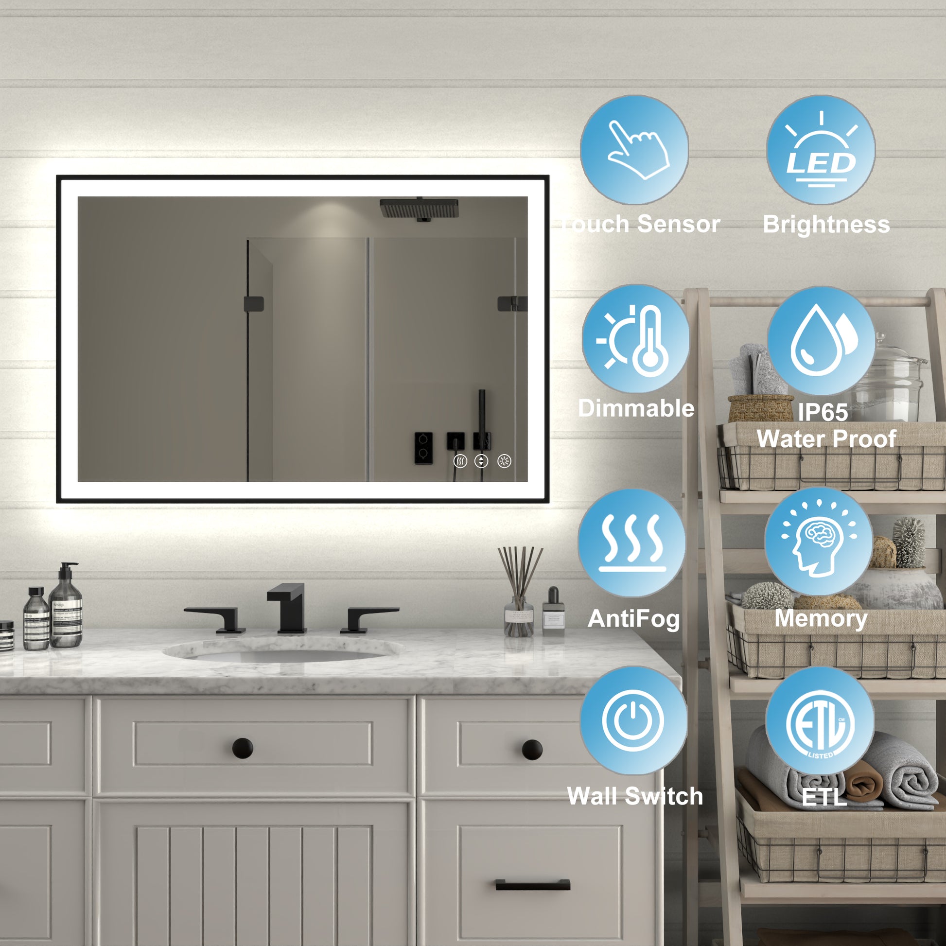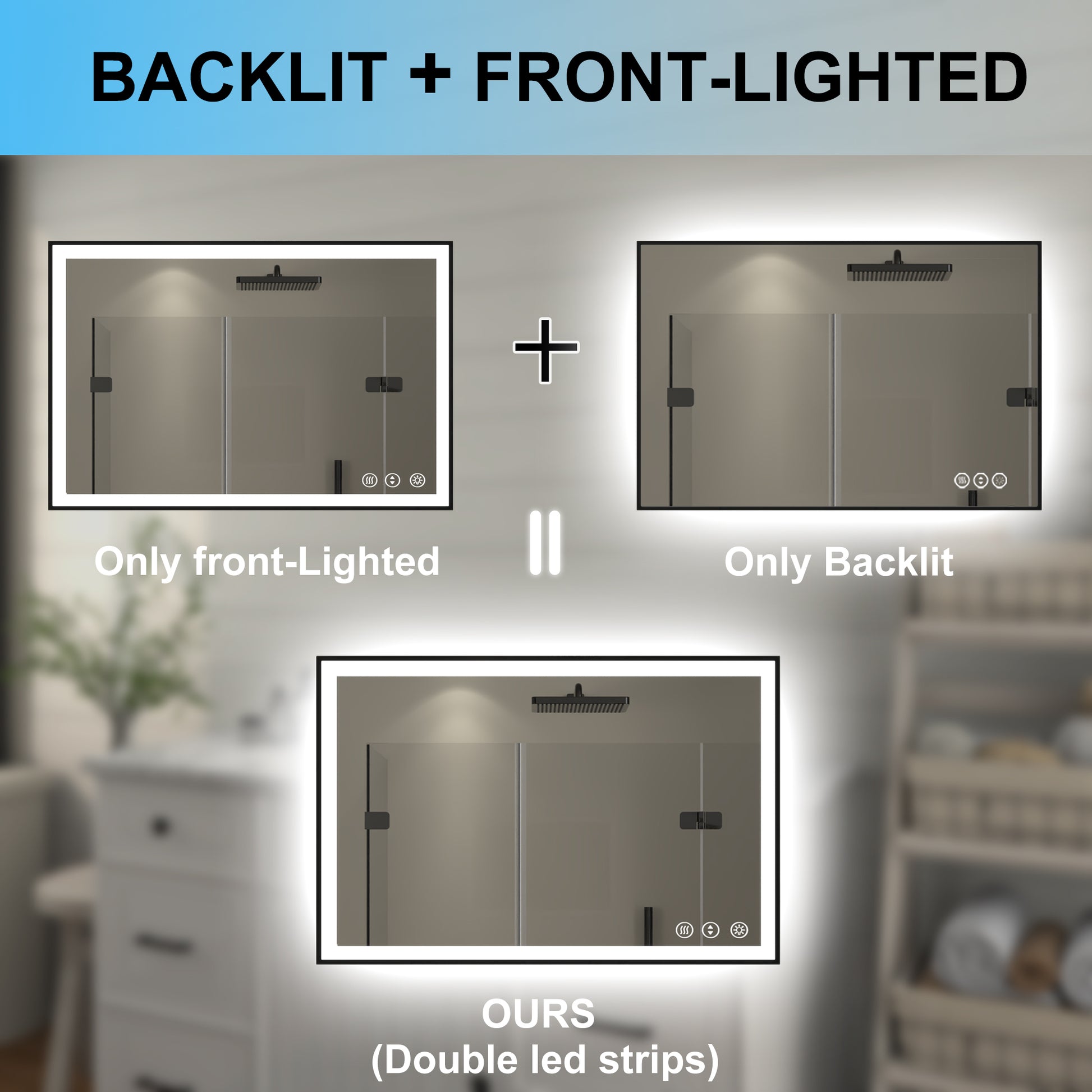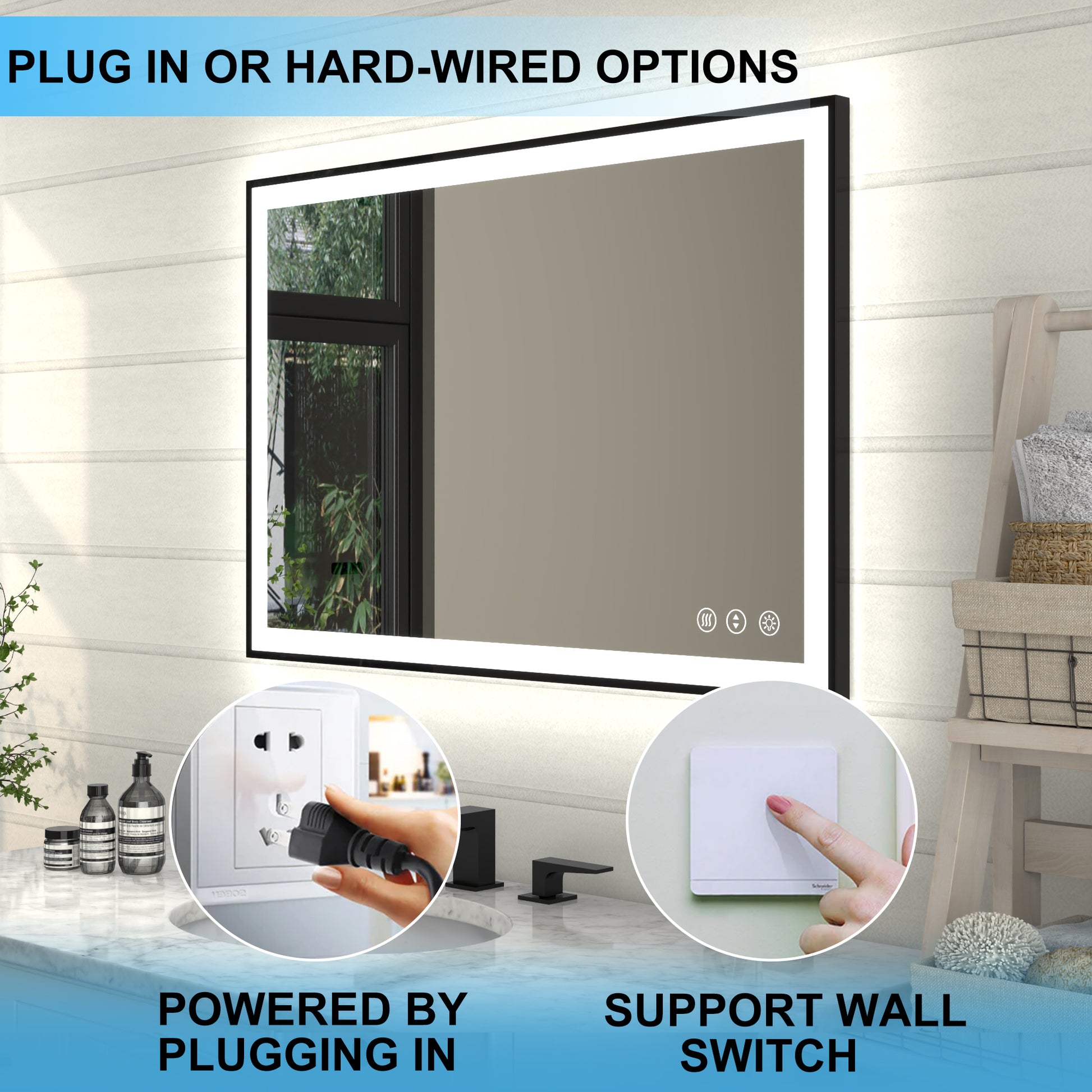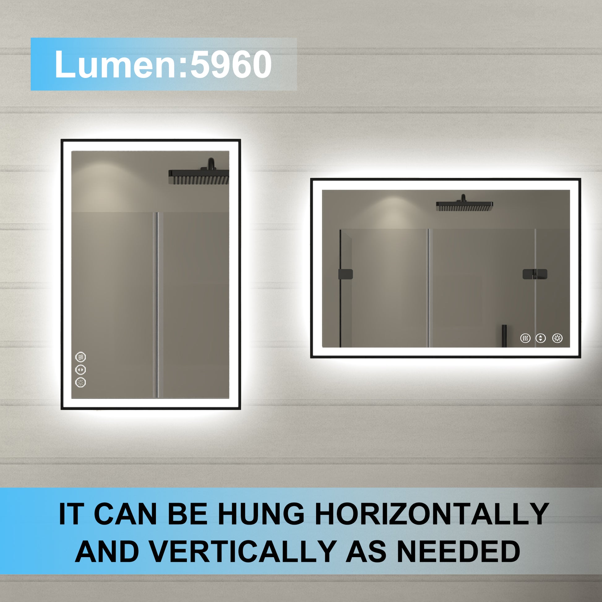- 【Vanity Mirror with Defogging System】With anti-fog function, our bathroom mirrors can quickly remove the water vapor on the mirror surface and maintain a clear and transparent state. No need to wipe the mirror after bathing. Free your hands. Anti-fog feature will auto off after one hour.