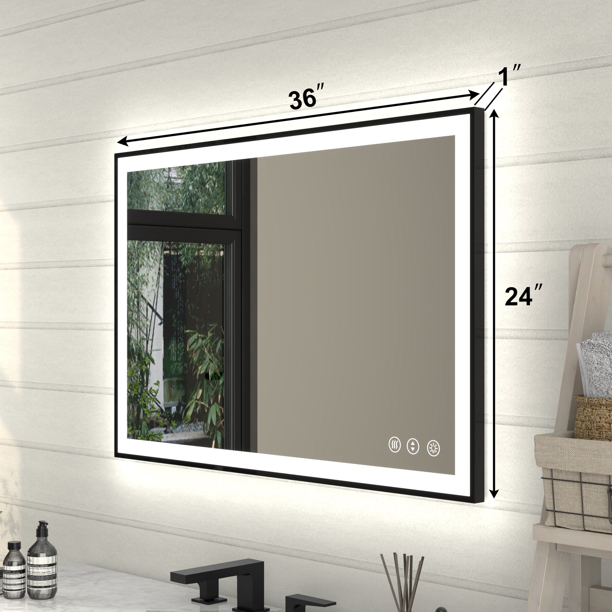 Apex-Noir 24"x36" Framed LED Lighted Bathroom Mirror