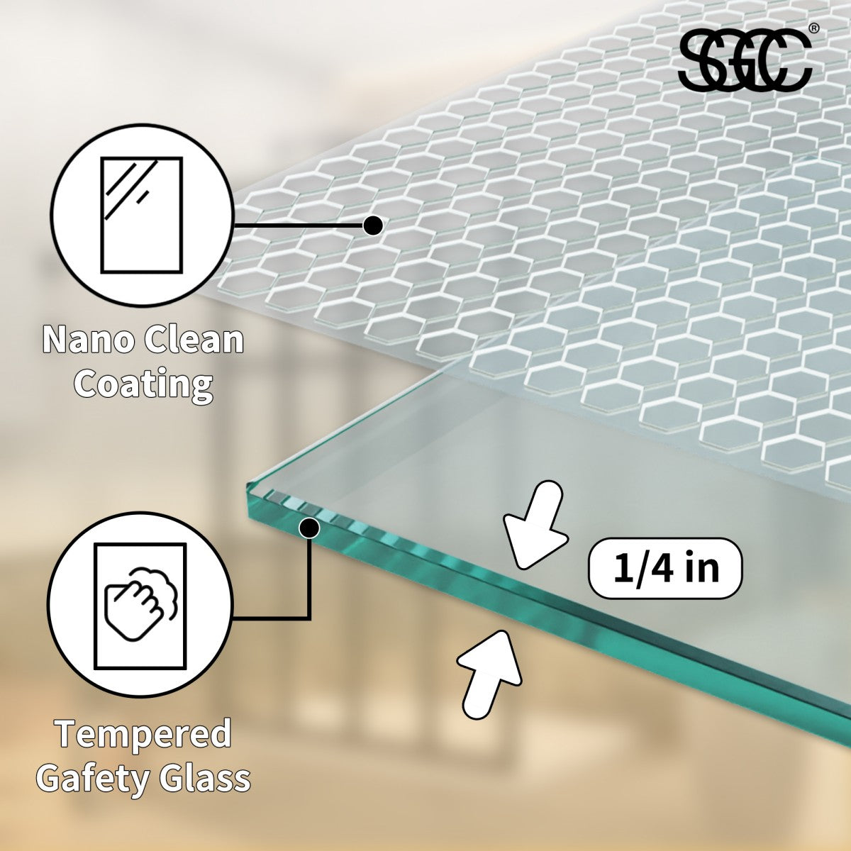 - Certification : SGCC Certification(Ensures the glass is safe and won't break into dangerous shards.);ANSI Z97.1 Certification(Ensures the glass is tempered and breaks into safe, small pieces.)