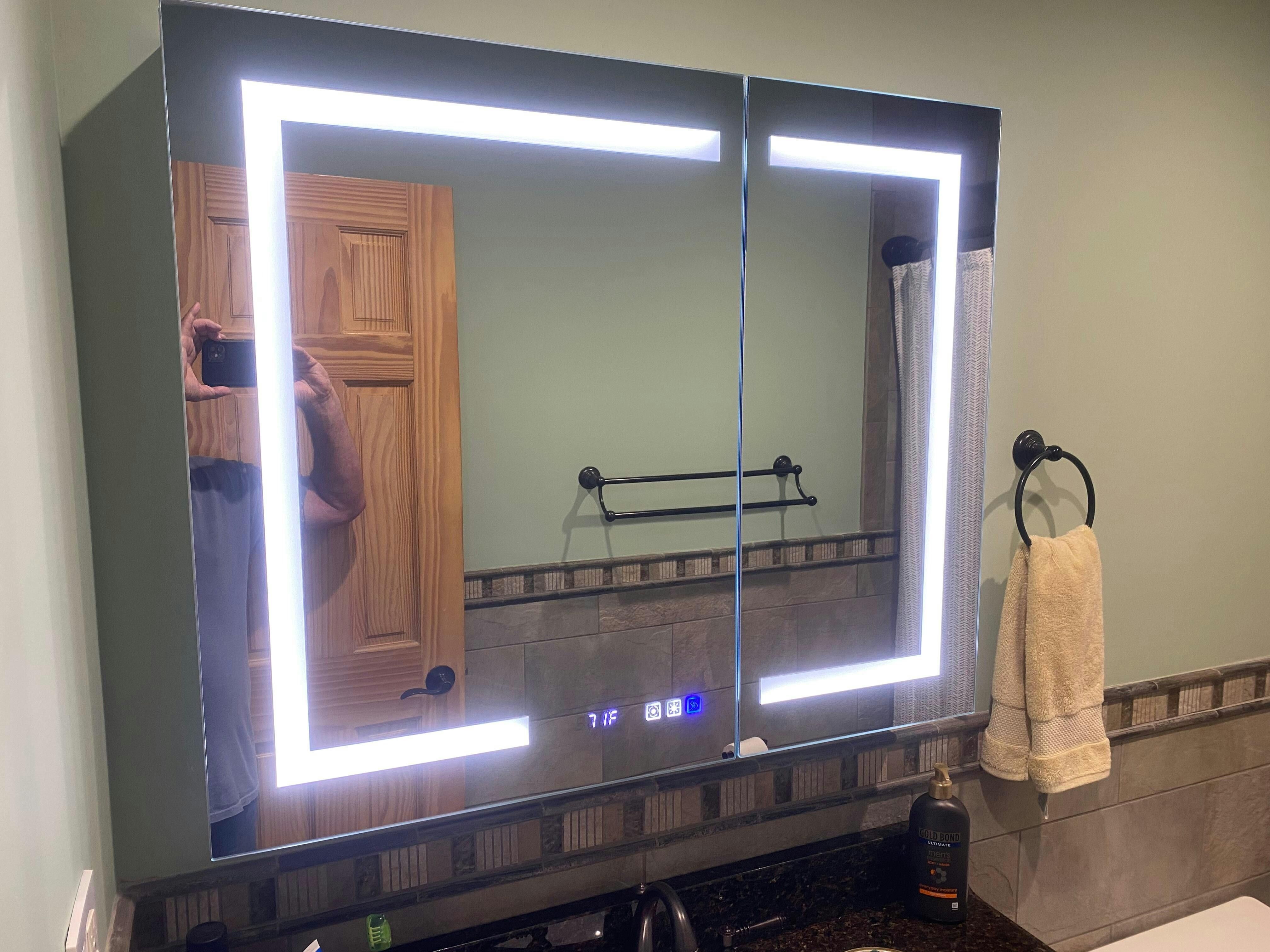 1. Elevate your daily bathroom experience with our innovative stepless dimming LED medicine cabinet, equipped with fully customizable brightness and color temperature settings.