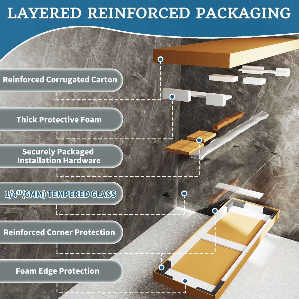 - Certification : SGCC Certification(Ensures the glass is safe and won't break into dangerous shards.);ANSI Z97.1 Certification(Ensures the glass is tempered and breaks into safe, small pieces.)