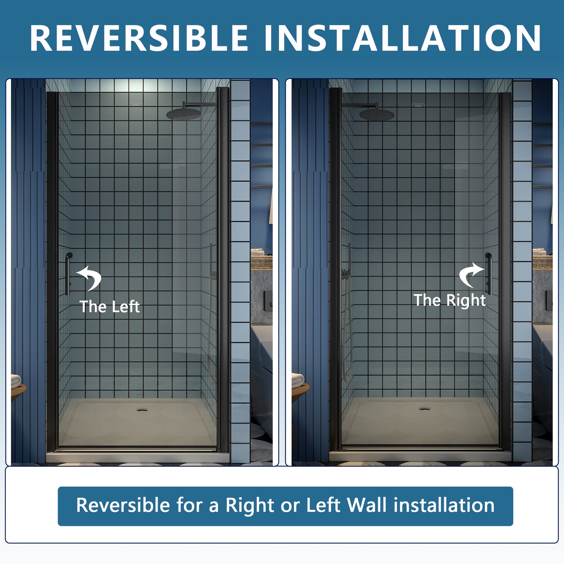 This shower door was quite easy for me to install, a little tricky when dealing with the weight of the glass. But I handled the installation by myself. The black is has the right amount of matte so not overly shiny. Looks great in the kids bathroom. Instructions are easy enough to follow, I'd say it took me about an hr to install. Glass is a nice thickness. Nothing about this screams,good weight, solid glass and Nice paint finish. I'd do it over again, turned out great. Way cheaper than getting a contractor to purchase and to replace a shower door.