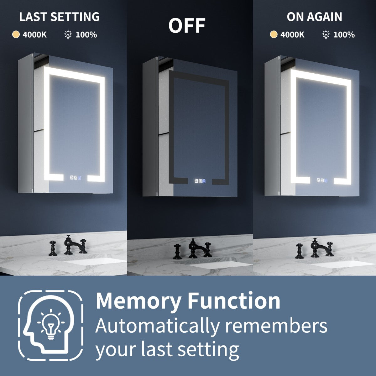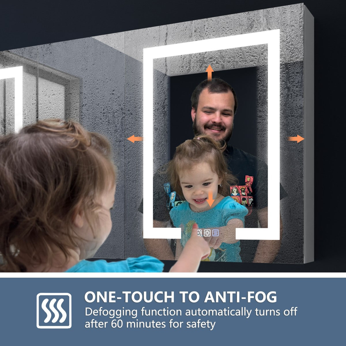 1. Eliminate foggy mirrors effortlessly with the one-touch defogging feature of our LED medicine cabinet.