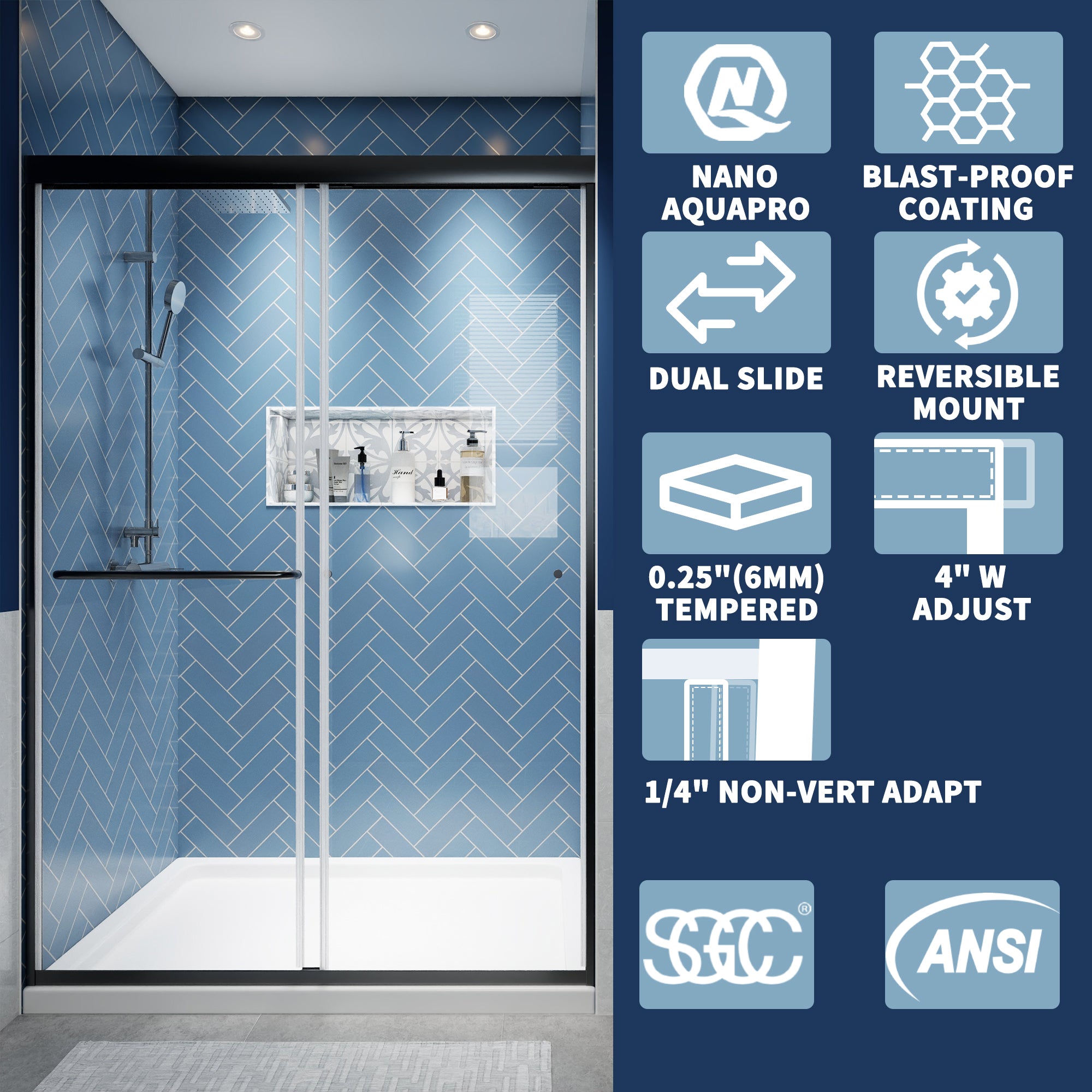 Glide Series Modern Sliding Shower Doors,Dual Sliding Panels, Stainless Steel Handles, 1/4"Vertical Adjustment