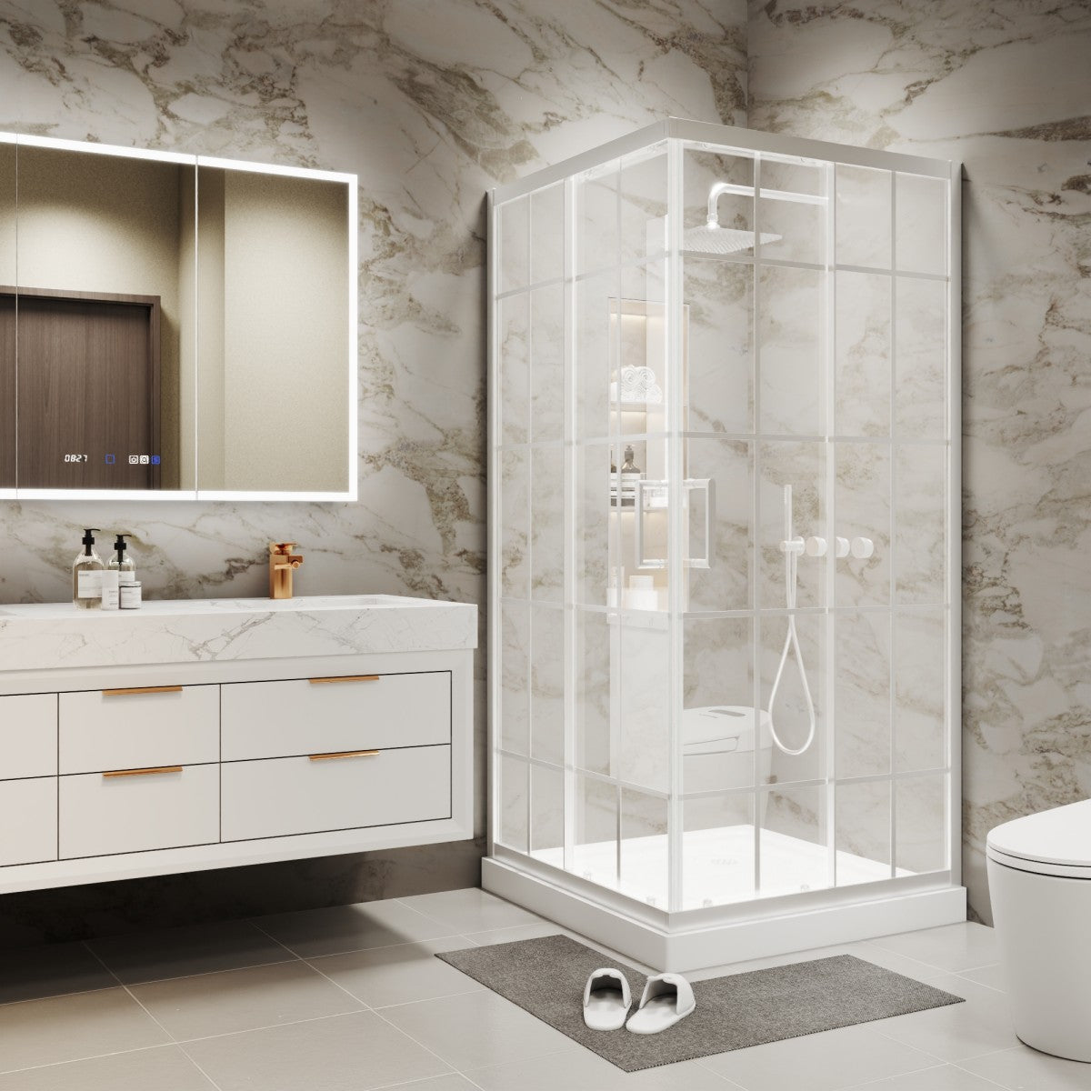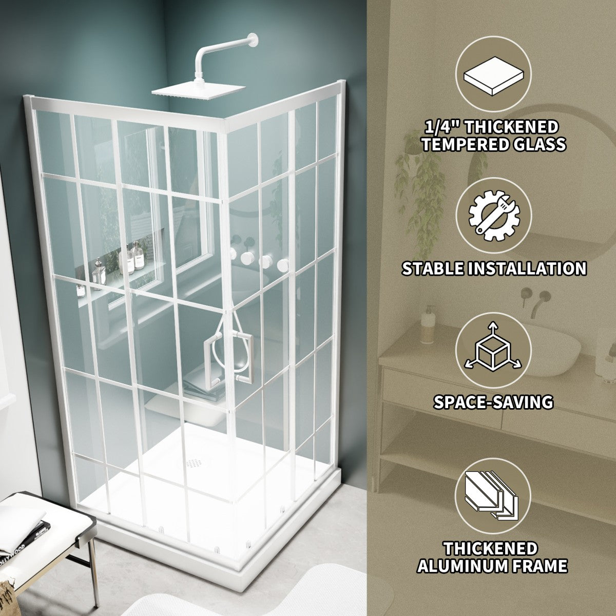 SGCC Certified 6mm Clear Tempered Glass: Ensures enhanced safety and a modern, transparent look for your bathroom.