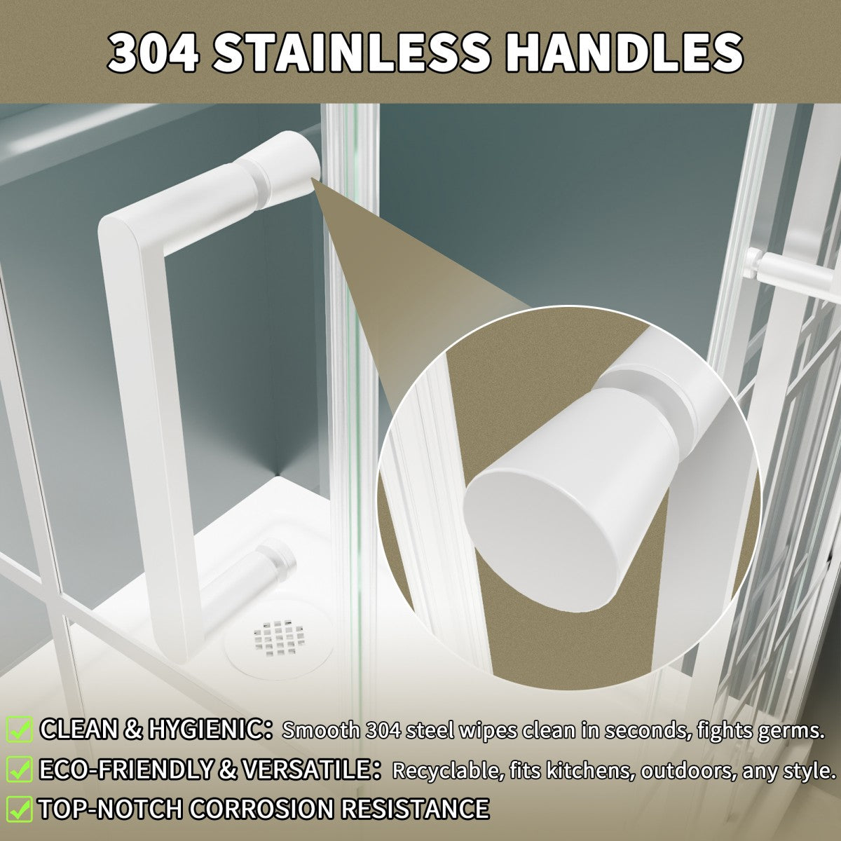 304 Stainless Steel Door Handle: Durable and rust-resistant, offering a sleek and sturdy grip.