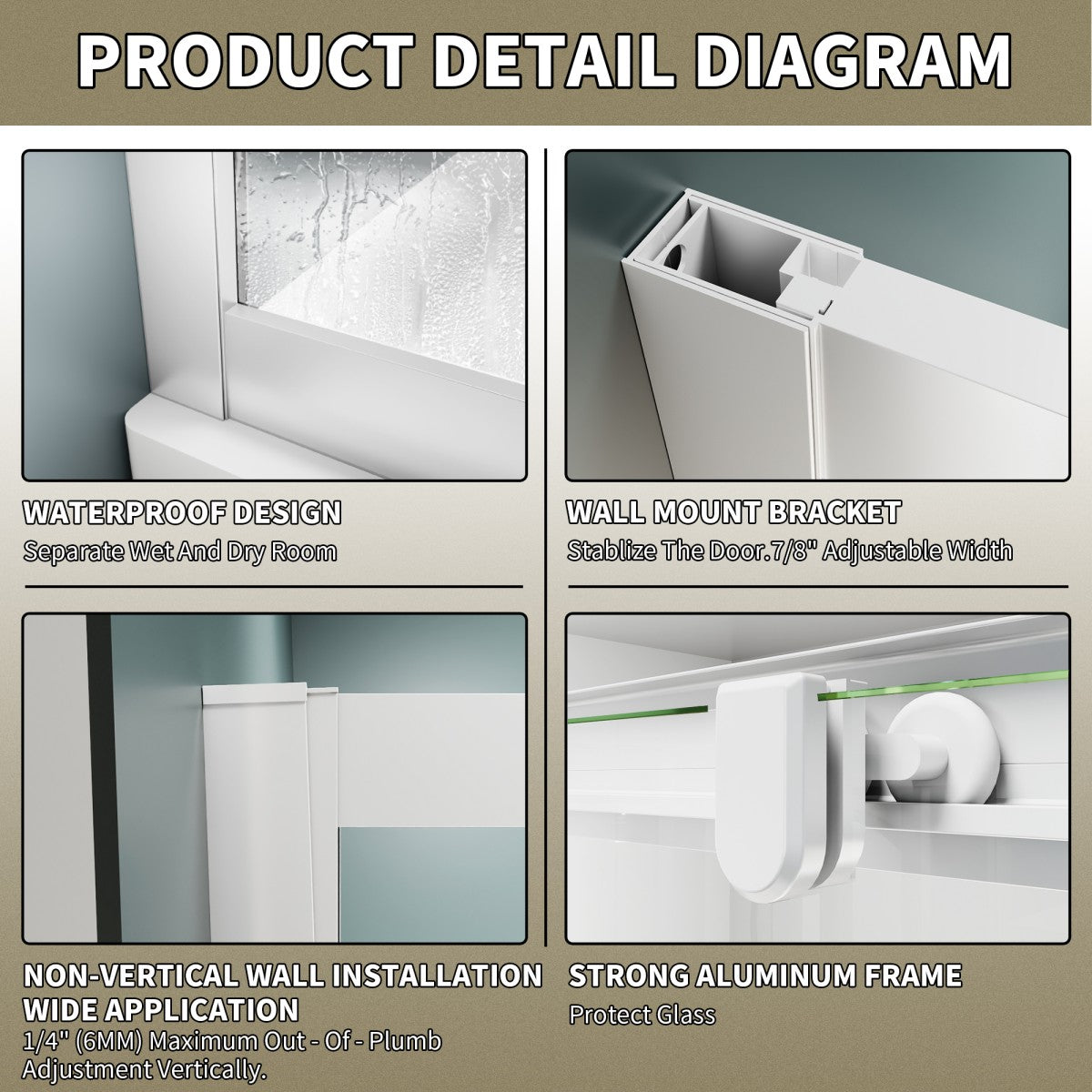 - Shower doors are SGCC and ANSI certified.
