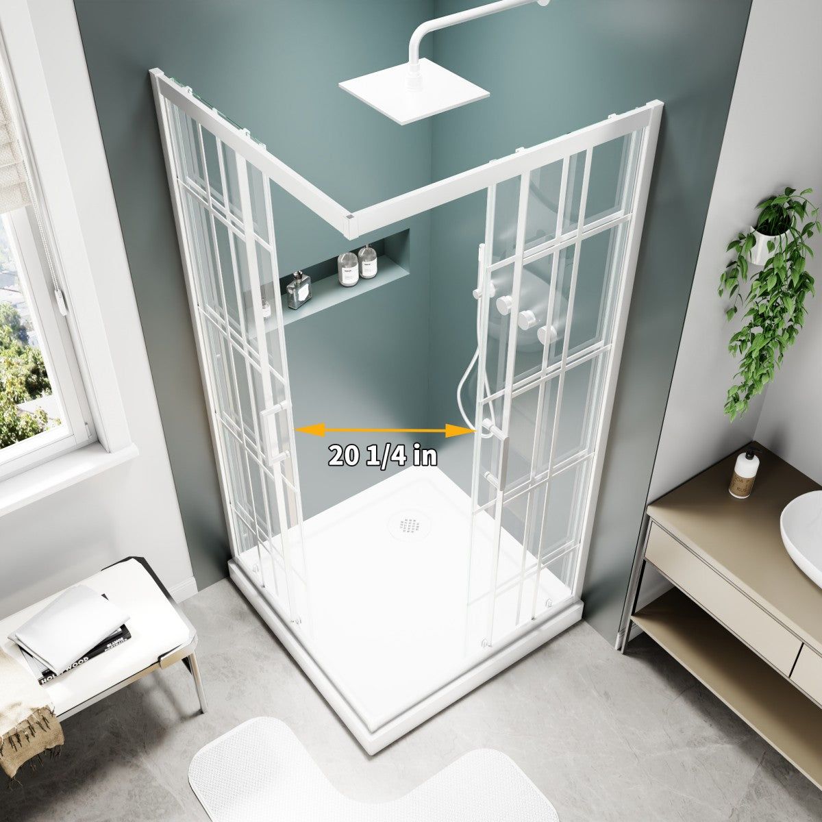 Haven-S 38" x 72" Corner Shower Enclosure,6mm Clear Glass,Double Sliding Shower Doors,White,Not Base,Adjustable
