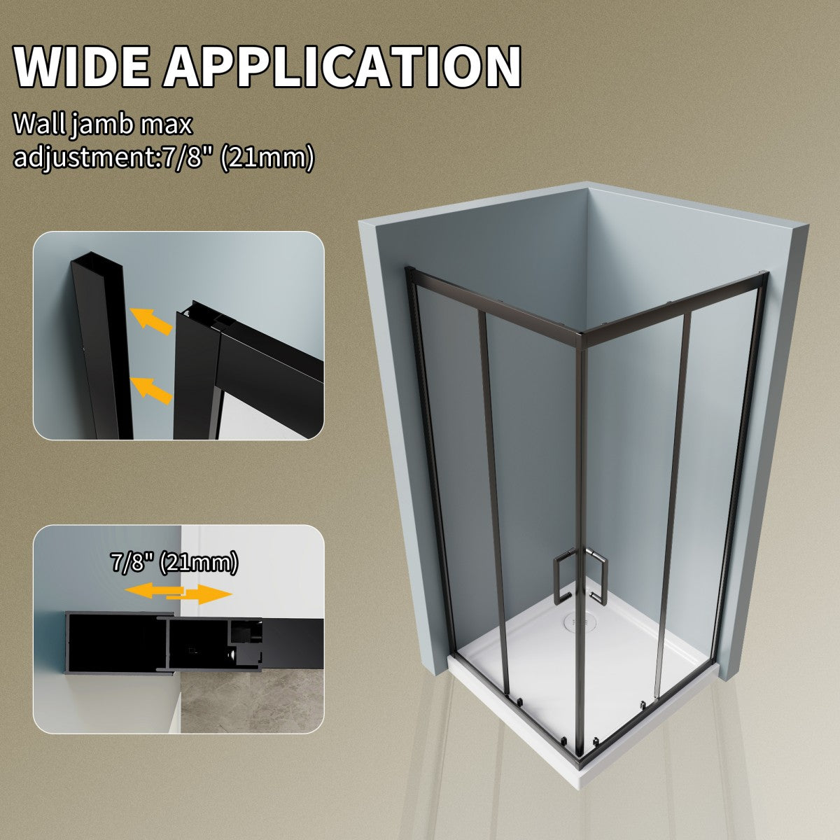 Haven 38" x 72" Matte Black Corner Shower Enclosure,6mm Clear Glass,Double Sliding Shower Doors,Not Base,Adjustable