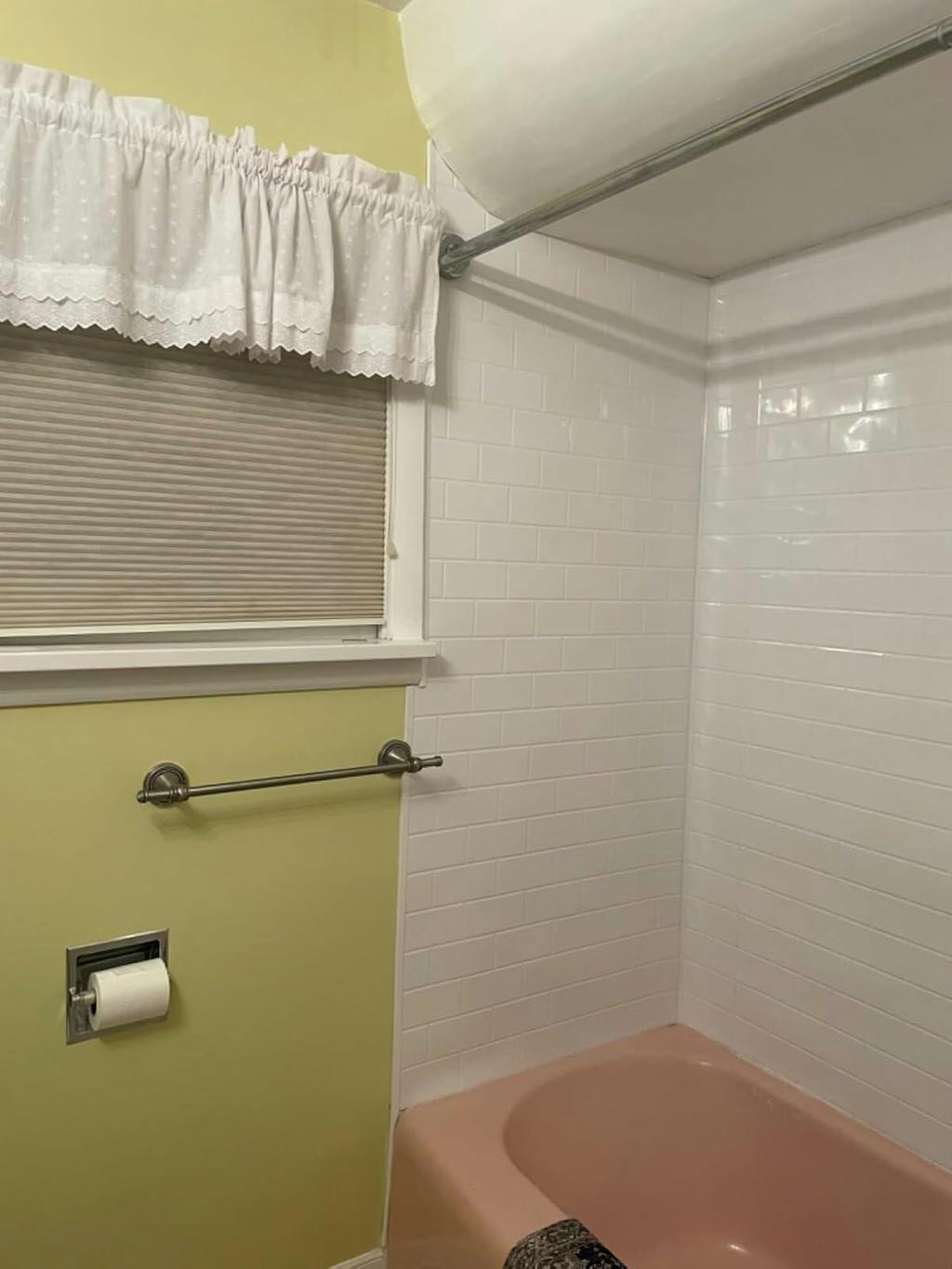 Looks great and works well for a bathroom that needs a lot of give (wavy walls, windows, lots of plumbing to work anround); it’s very forgiving. It’s a two person job for sure! Use sharp scissors, not razor edges.