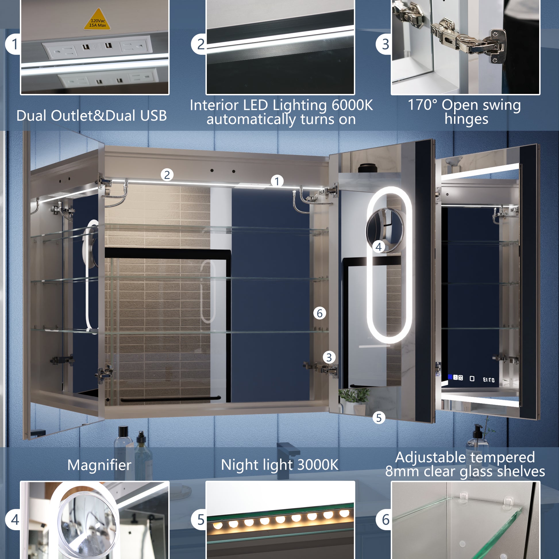 Illusion 48" x 36" LED Lighted Medicine Cabinet with Magnifiers Front and Back Light