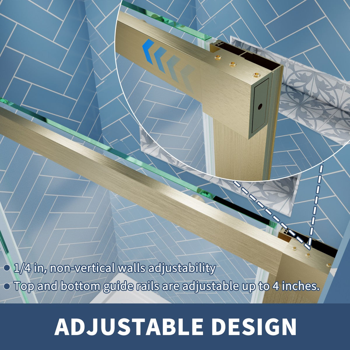 - Our shower door features a 4-inch adjustable installation, allowing for a perfect fit in your space: