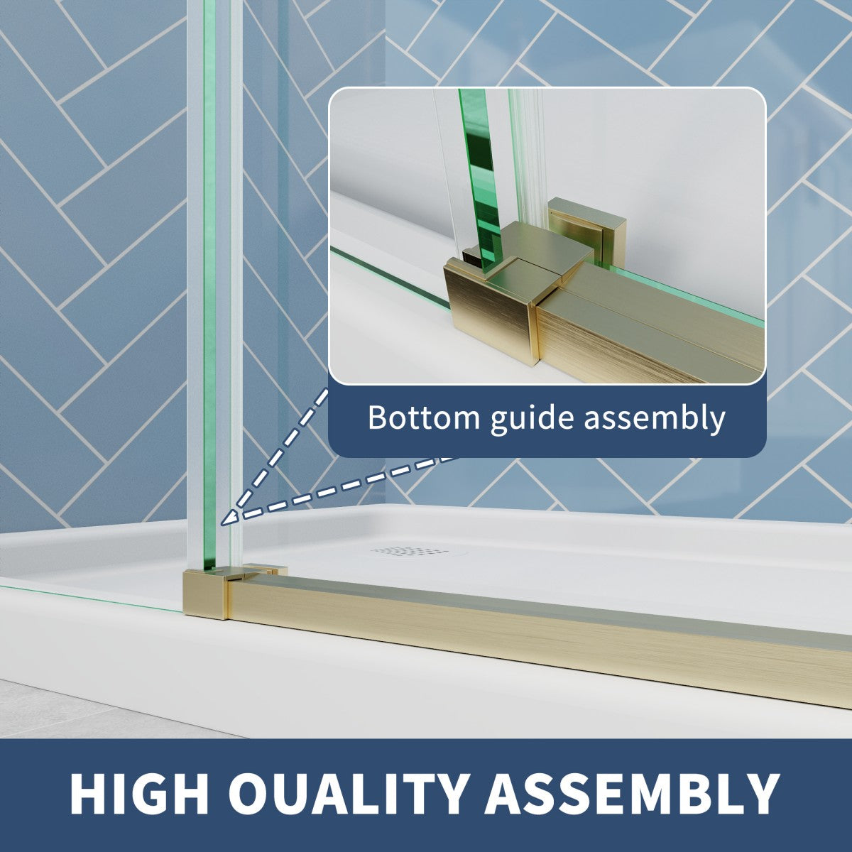 Lock Adjustable 44-48"W x 74"H Sliding Glass Shower Door with 8mm Clear Tempered Glass,Stainless Steel Hardware Brushed Gold,Rectangle Shower Door