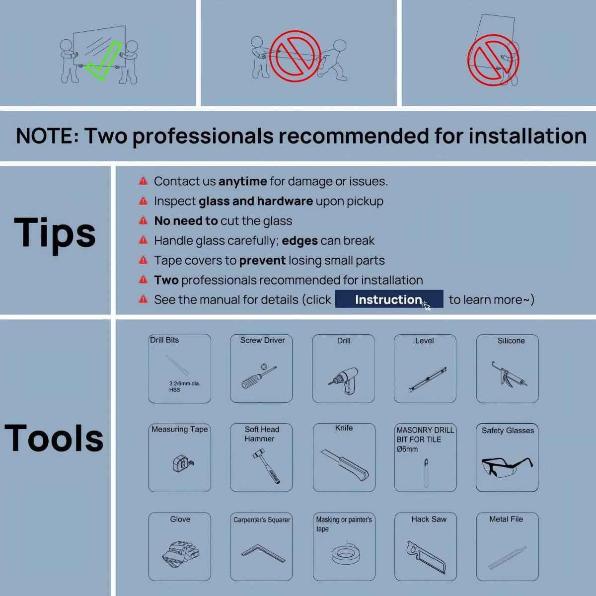 Adjustable Installation Dimensions: Can be adjusted by up to 4in, with 2in affecting the walk-in width and the other 2in adjusted via wall materials.