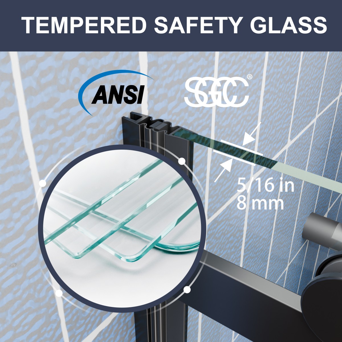 - Shower doors are SGCC and ANSI certified.