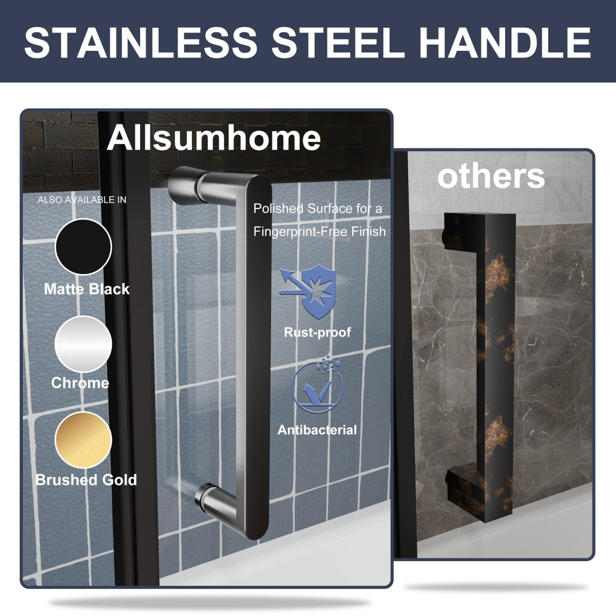 - Rust-proof, germ-resistant, scratch-proof—for a flawless grip that lasts.