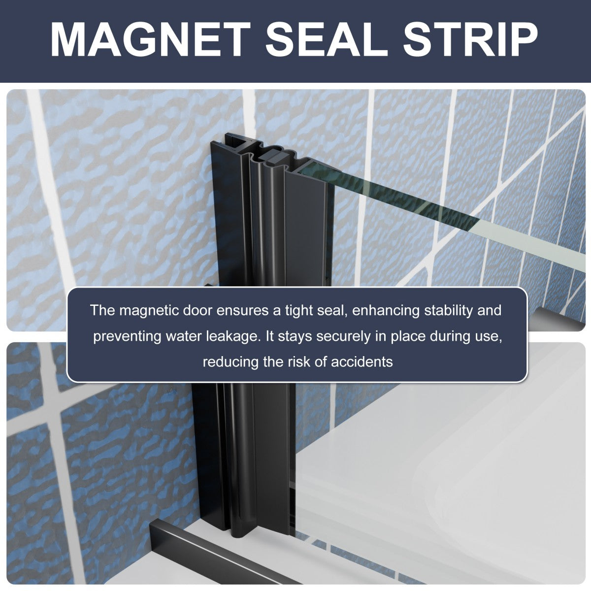 Smooth Operation: Specially designed rollers ensure a quiet and smooth sliding motion. The minimalist bottom track and full-length seals prevent water leakage.
